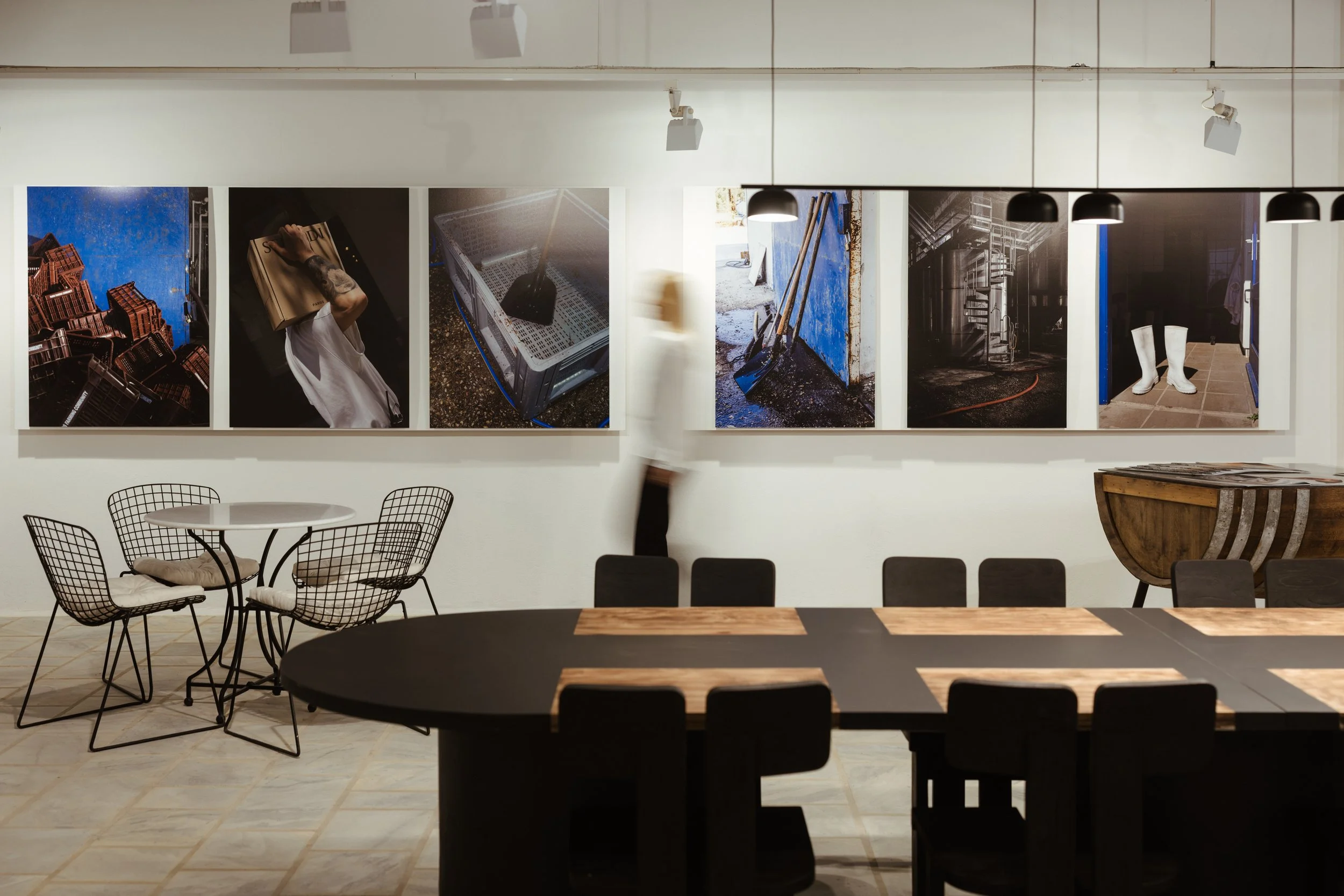 Stand on top of the semi- mountaneous terraces of our vineyards overlooking the endless blue of the Mediterranean and step into our stunning tasting room, designed in a minimalistic Cycladic style. A curated photography exhibition along our walls captures the people and landscapes that have shaped our community.